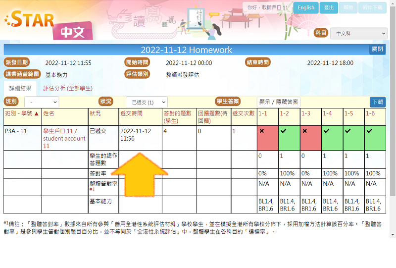 教師和學生可於評估報告和個人報告中查看評估的遞交時間。
