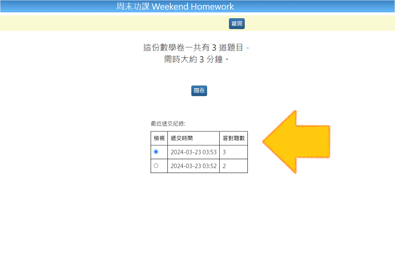 可查閱同一評估最近三次遞交的答案