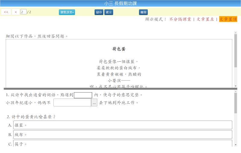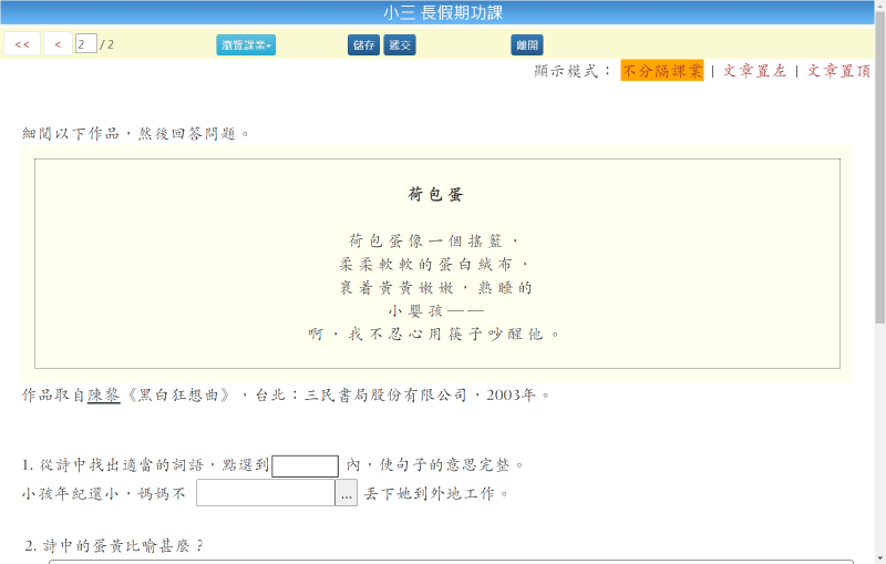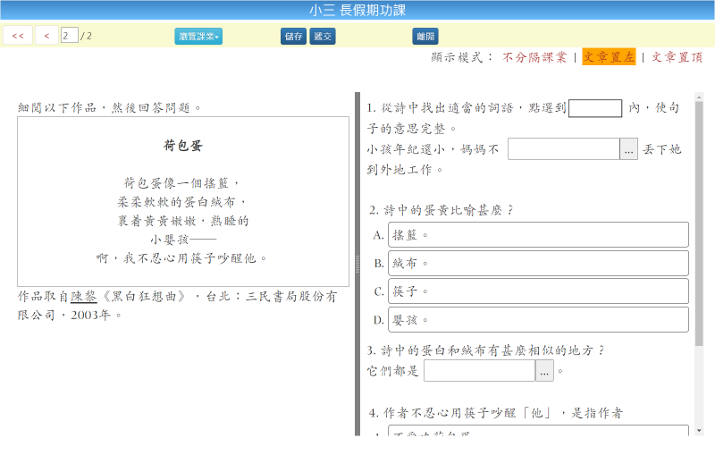 語文科閱讀課業提供分屏顯示 (視乎評估課業設計而定)